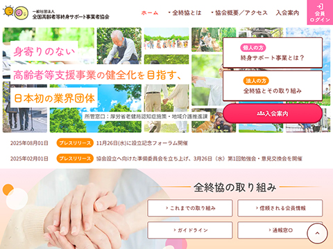 全国高齢者等終身サポート事業者協会(以下:全終協)は、国が策定した「高齢者等終身サポート事業者ガイドライン」を基盤に、身寄りのない高齢者等の生活支援・身元保証・死後事務といった終身サポート事業の健全な発展を目的に設立された、日本初の業界団体です。
